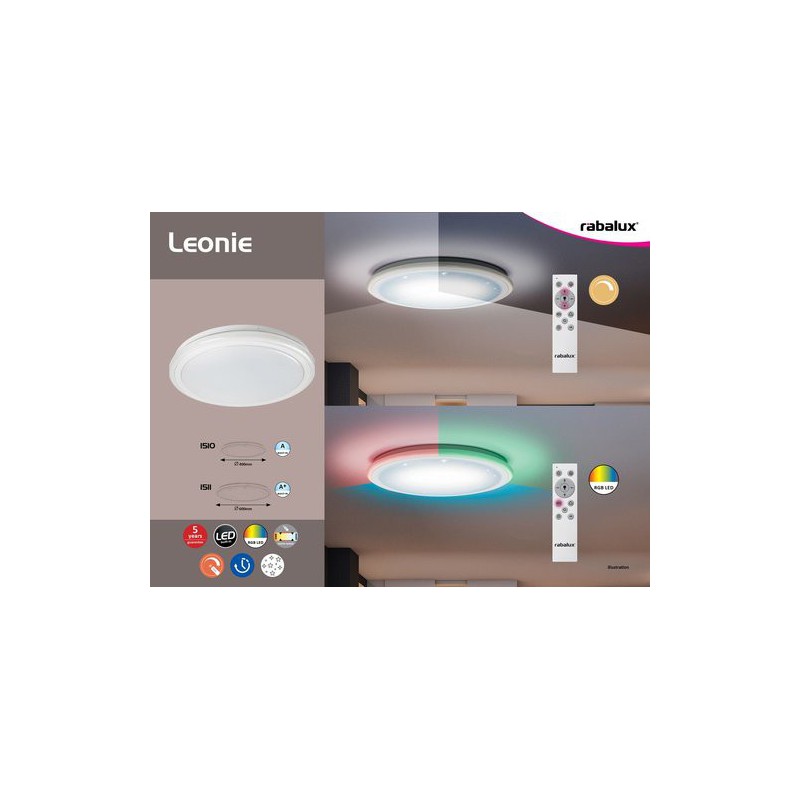 Moderné stropné svietidlo leonie. Odporúčaná miestnosť pre použitie je kuchyňa, obývačka. Farba lampy biela. Farba tienidla biela. Materiál lampy kovové. Materiál tienidla umelá hmota