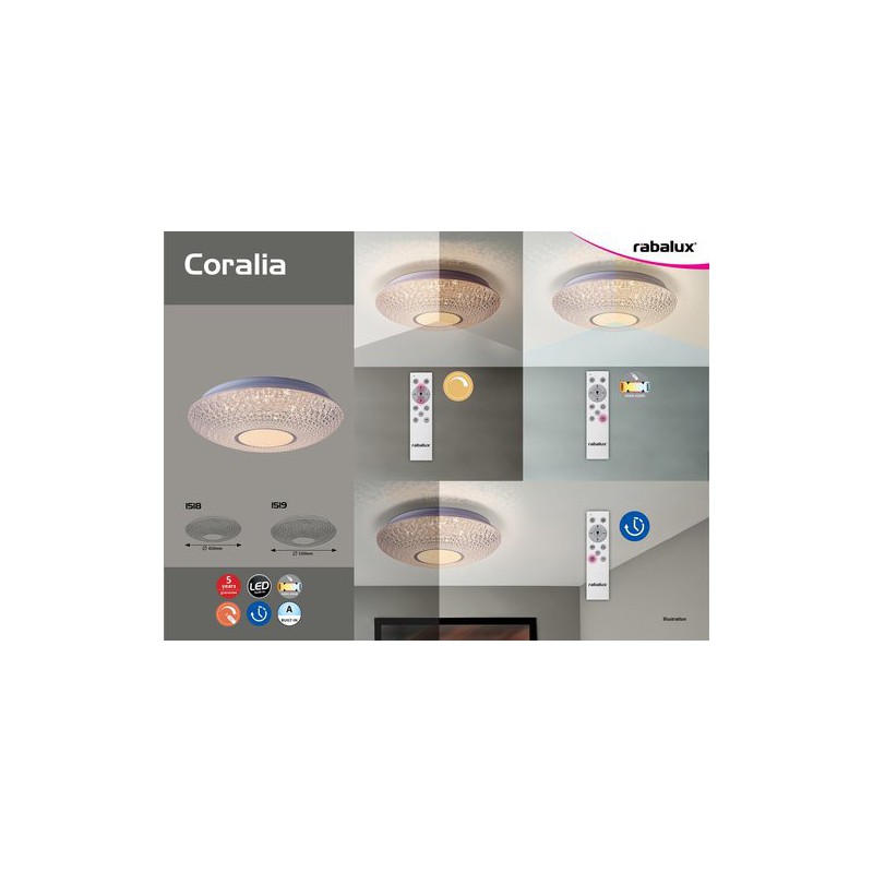 Rabalux 1518 - Coralia stropné svietidlo LED 48W meniteľné umelá hmota priehľadná/priehľadná