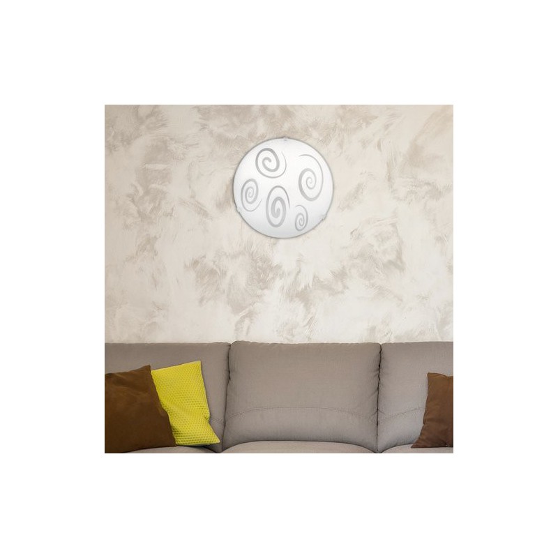 Štandard stropné svietidlo spiral. Odporúčaná miestnosť pre použitie je obývačka, spálňa, pracovná izba. Farba lampy biela. Farba tienidla priehľadná. Materiál lampy kovové/ umelá hmota. Materiál tienidla sklo