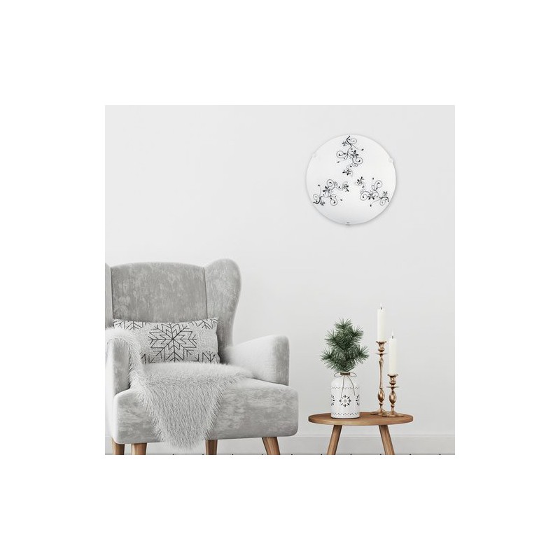 Štandard stropné svietidlo bloomy. Odporúčaná miestnosť pre použitie je obývačka, pracovná izba. Farba lampy biela. Farba tienidla biela. Materiál lampy kovové/ umelá hmota. Materiál tienidla sklo