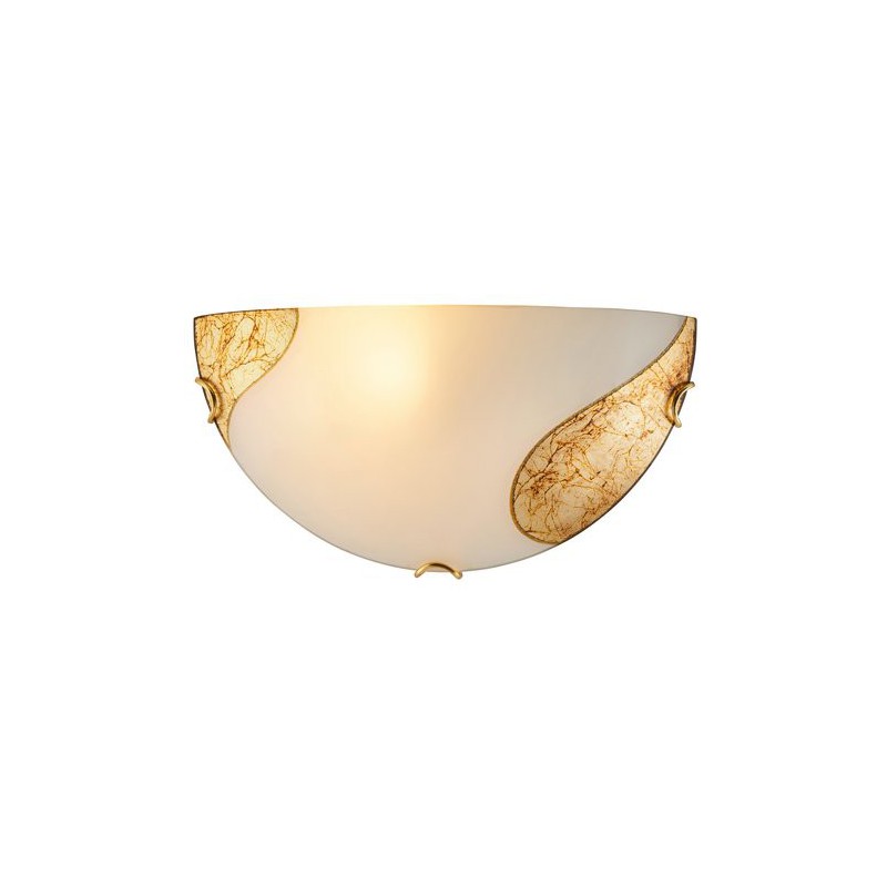 Klasické nástenné svietidlo art gold. Odporúčaná miestnosť pre použitie je obývačka, pracovná izba. Farba lampy biela. Farba tienidla biela vzorovaná. Materiál lampy kovové. Materiál tienidla sklo
