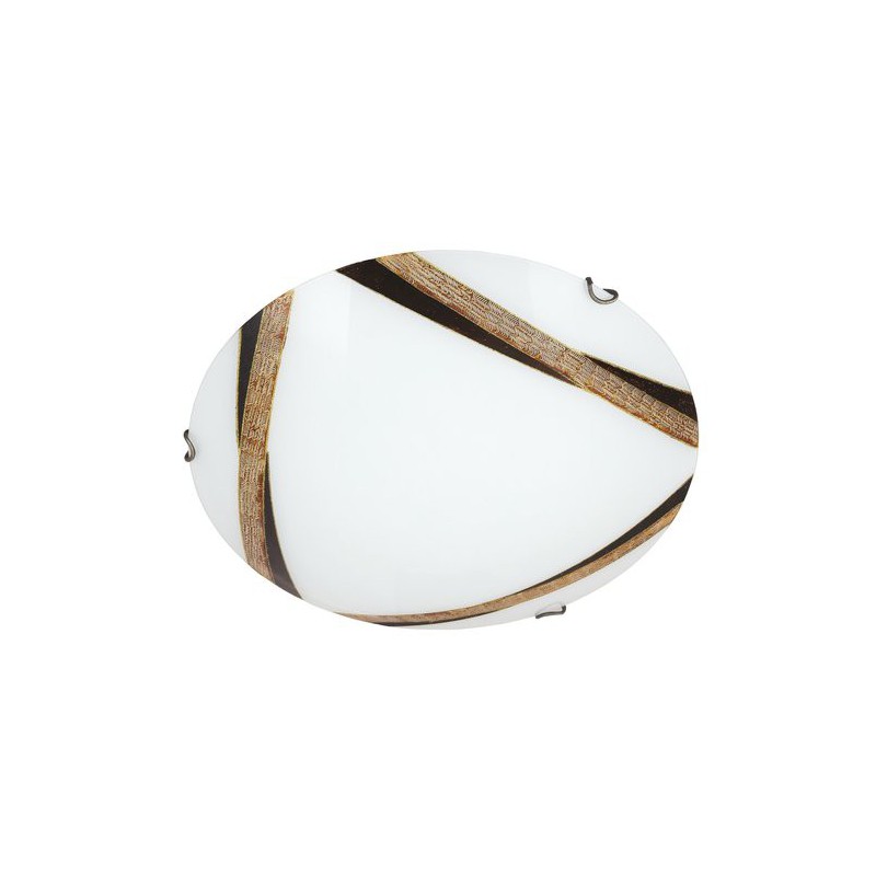 Klasické stropné svietidlo art bronze. Odporúčaná miestnosť pre použitie je obývačka, pracovná izba. Farba lampy biela. Farba tienidla biela vzorovaná. Materiál lampy kovové. Materiál tienidla sklo