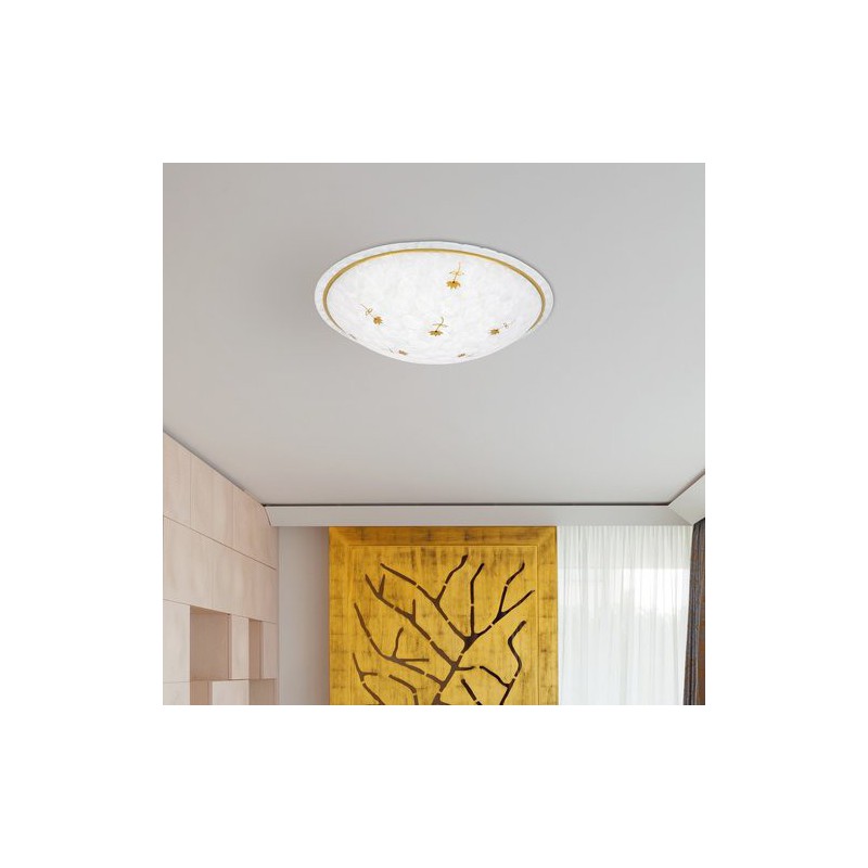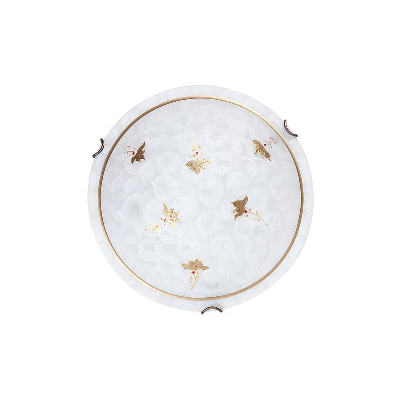 Klasické stropné svietidlo art flower. Odporúčaná miestnosť pre použitie je obývačka, kuchyňa, jedáleň, spálňa. Farba lampy biele alabastrové sklo. Farba tienidla biela vzorovaná. Materiál lampy kovové. Materiál tienidla sklo