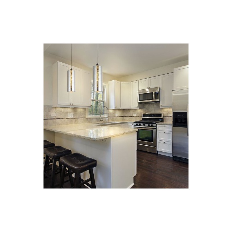 Moderné závesné svietidlo vera. Odporúčaná miestnosť pre použitie je obývačka, jedáleň, kuchyňa. Farba lampy chrómová. Farba tienidla chrómová. Materiál lampy kovové. Materiál tienidla sklo