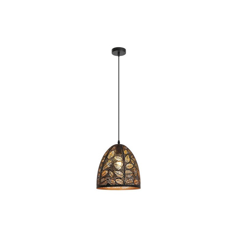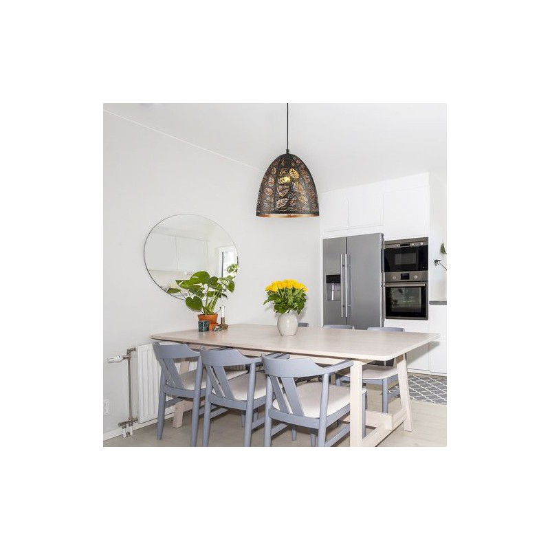 Tropický závesné svietidlo manorca. Odporúčaná miestnosť pre použitie je obývačka, jedáleň, kuchyňa. Farba lampy čierna. Farba tienidla čierna. Materiál lampy kovové. Materiál tienidla kovové