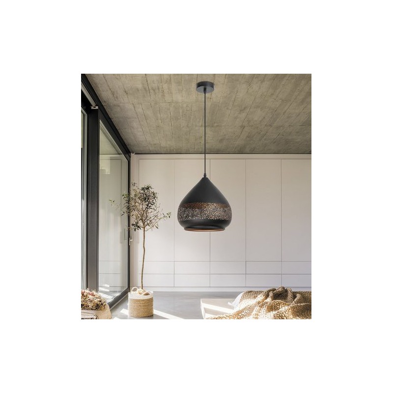 Tropický závesné svietidlo kaia. Odporúčaná miestnosť pre použitie je obývačka, jedáleň, kuchyňa. Farba lampy čierna. Farba tienidla čierna. Materiál lampy kovové. Materiál tienidla kovové