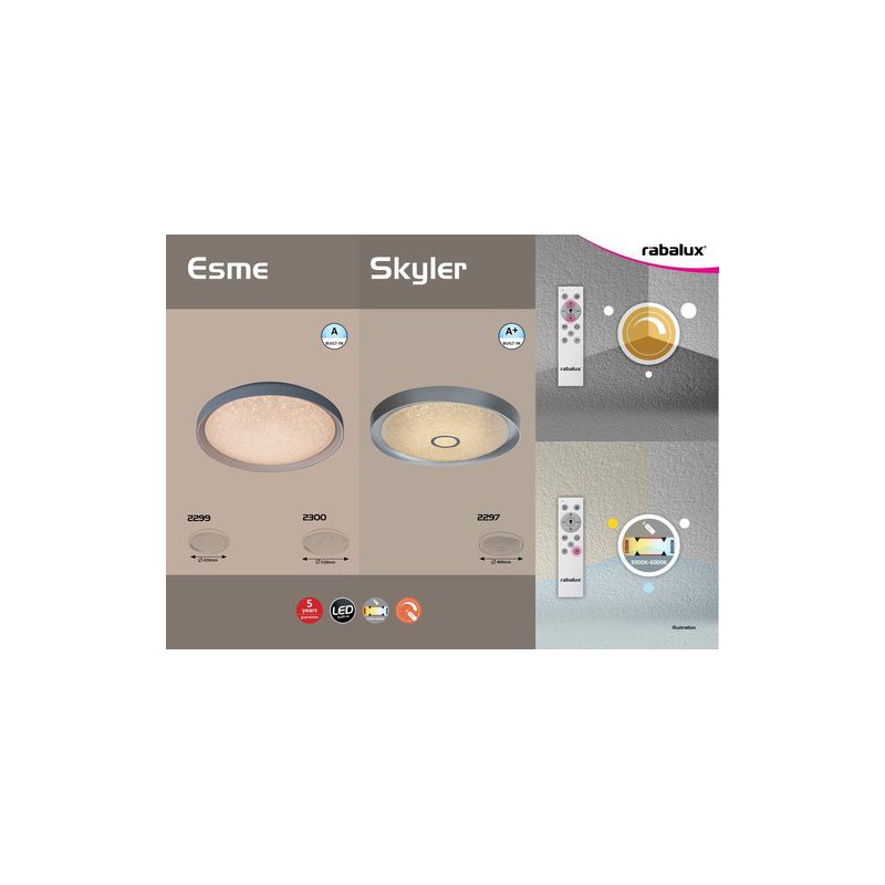 Rabalux 2300 - Esme stropné svietidlo LED 40W meniteľné umelá hmota biela/priehľadná