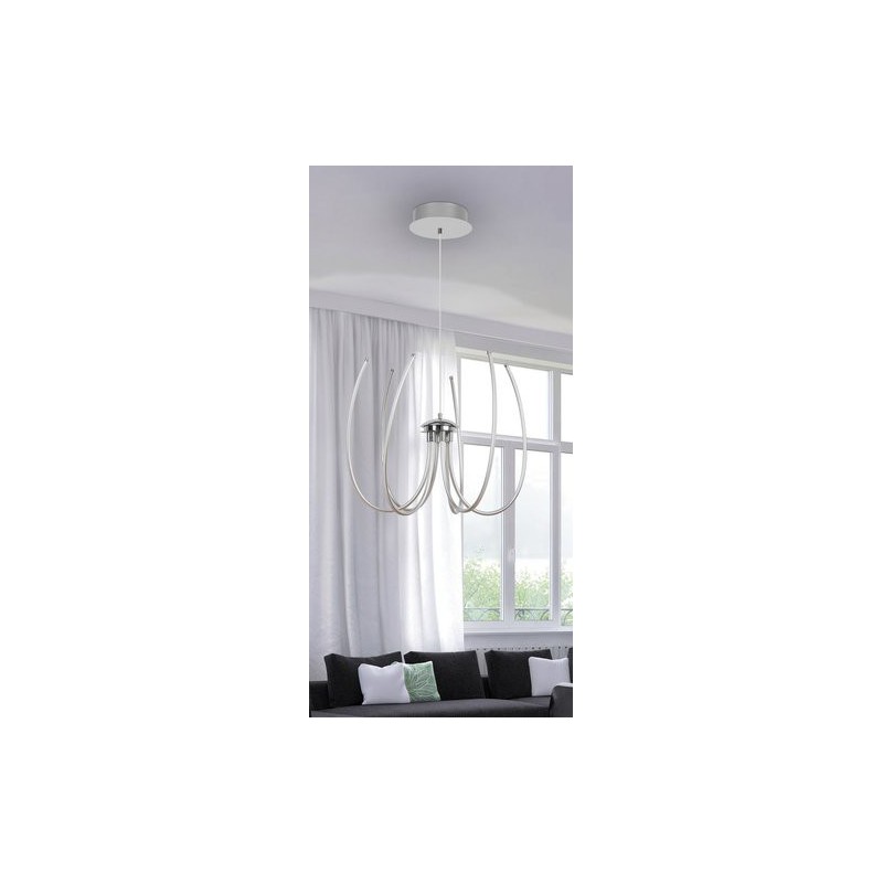 Moderné závesné svietidlo alisha. Odporúčaná miestnosť pre použitie je obývačka, pracovná izba. Farba lampy strieborná. Materiál lampy kovové. Materiál tienidla kovové
