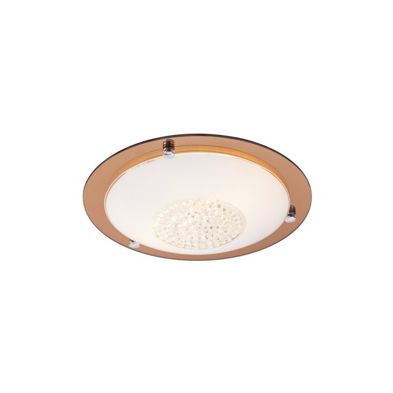Moderné stropné svietidlo patricia. Odporúčaná miestnosť pre použitie je obývačka, pracovná izba. Farba lampy priehľadná. Farba tienidla ružové zlato. Materiál lampy kovové. Materiál tienidla sklo/ sklo krištál'