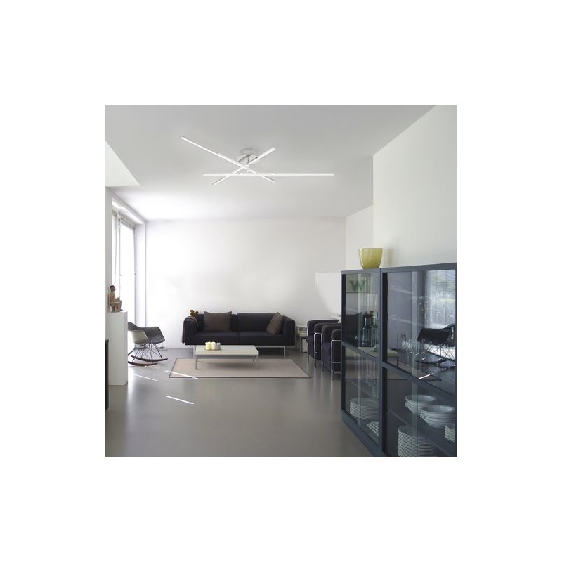 Minimalistický stropné svietidlo meredith. Odporúčaná miestnosť pre použitie je obývačka, jedáleň. Farba lampy chrómová. Farba tienidla biela. Materiál lampy kovové. Materiál tienidla umelá hmota