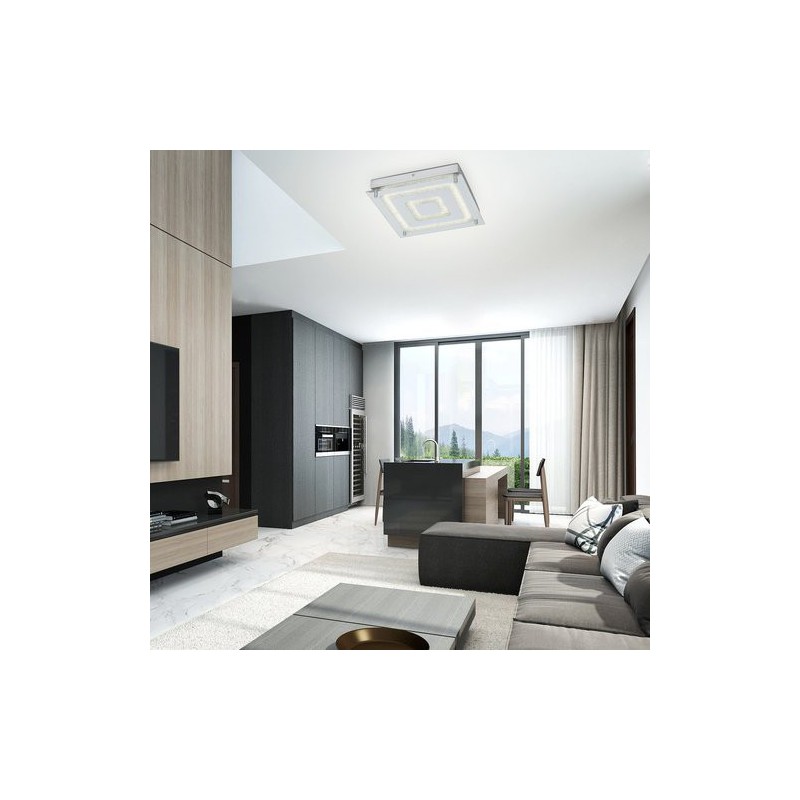 Moderné stropné svietidlo dagmar. Odporúčaná miestnosť pre použitie je obývačka. Farba lampy chrómová. Farba tienidla priehľadná. Materiál lampy kovové. Materiál tienidla sklo