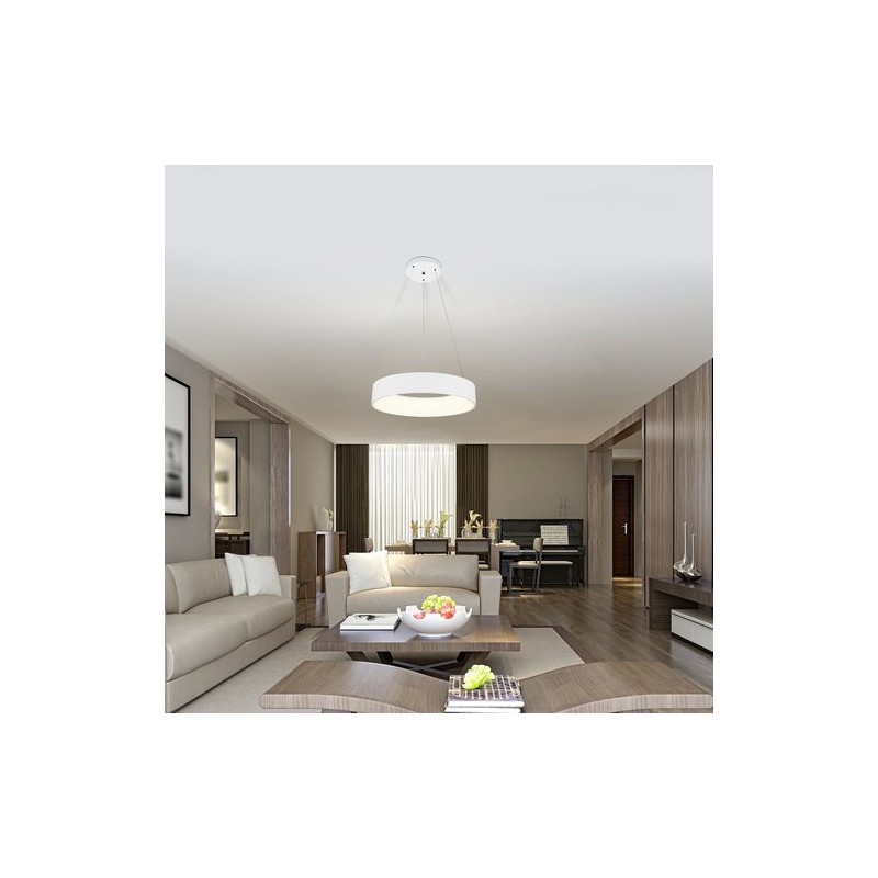 Minimalistický závesné svietidlo adeline. Odporúčaná miestnosť pre použitie je obývačka, jedáleň, kuchyňa. Farba lampy matná biela. Farba tienidla matná biela. Materiál lampy kovové. Materiál tienidla umelá hmota
