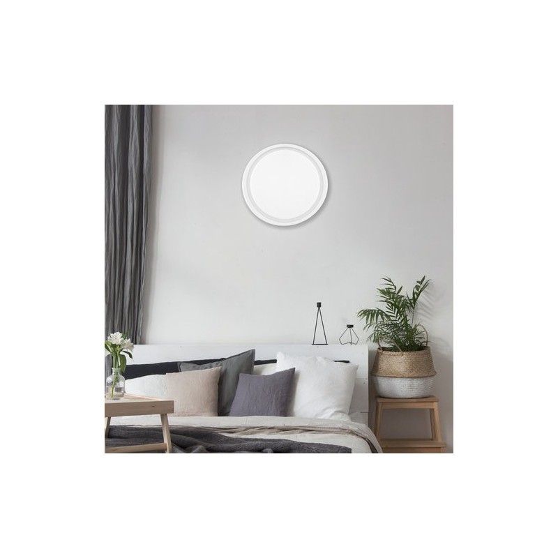 Minimalistický stropné svietidlo brady. Odporúčaná miestnosť pre použitie je obývačka, pracovná izba. Farba lampy biela. Farba tienidla biela. Materiál lampy kovové. Materiál tienidla umelá hmota