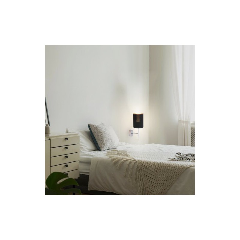 Štandard nástenné svietidlo monica. Odporúčaná miestnosť pre použitie je obývačka, pracovná izba. Farba lampy čierna. Farba tienidla čierna. Materiál lampy kovové. Materiál tienidla textil