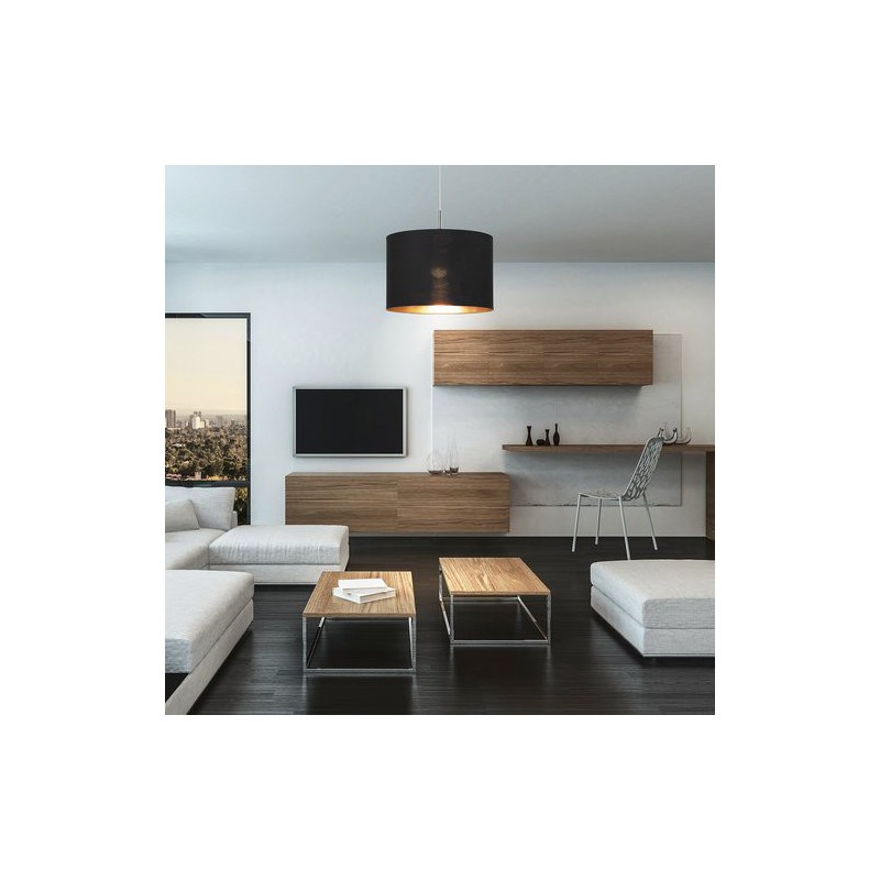 Štandard závesné svietidlo monica. Odporúčaná miestnosť pre použitie je obývačka, pracovná izba. Farba lampy čierna. Farba tienidla čierna. Materiál lampy kovové. Materiál tienidla textil