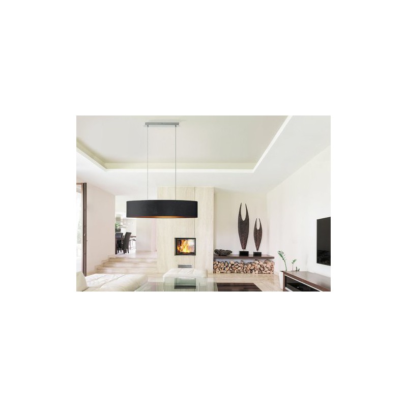 Štandard závesné svietidlo monica. Odporúčaná miestnosť pre použitie je obývačka, pracovná izba. Farba lampy čierna. Farba tienidla čierna. Materiál lampy kovové. Materiál tienidla textil