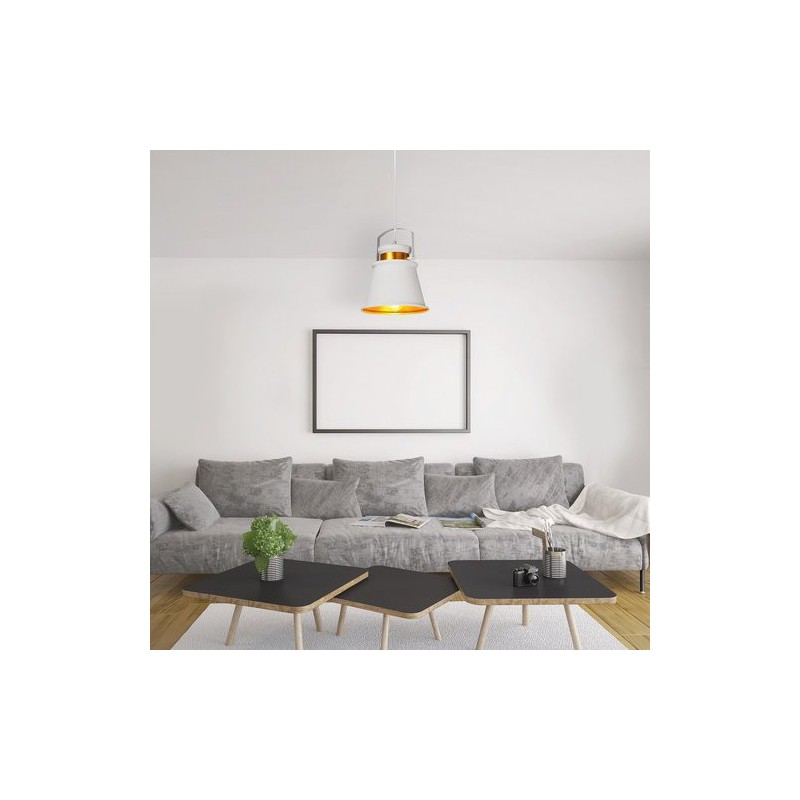 Industriálny závesné svietidlo dusan. Odporúčaná miestnosť pre použitie je obývačka, pracovná izba. Farba lampy matná biela. Farba tienidla matná biela. Materiál lampy kovové. Materiál tienidla kovové