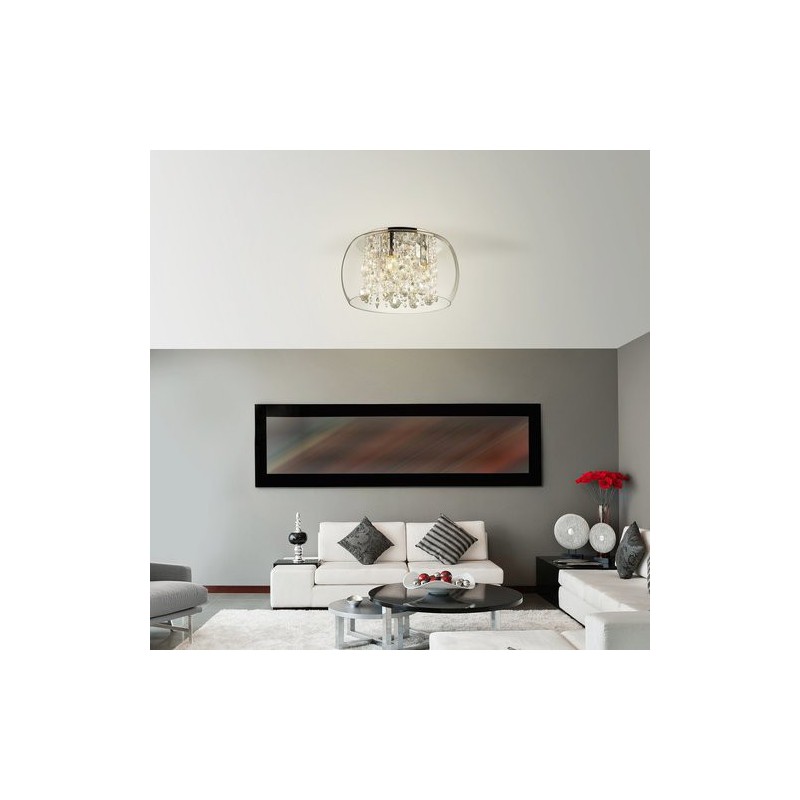 Moderné stropné svietidlo brillant. Odporúčaná miestnosť pre použitie je obývačka. Farba lampy priehľadná. Farba tienidla priesvitný krištáľ. Materiál lampy kovové. Materiál tienidla sklo/ sklo krištál'