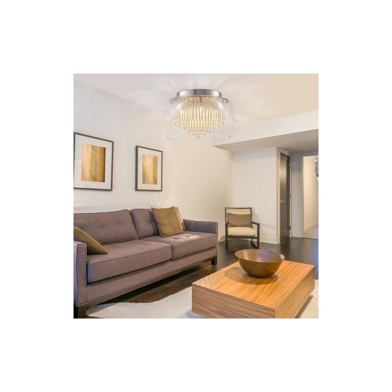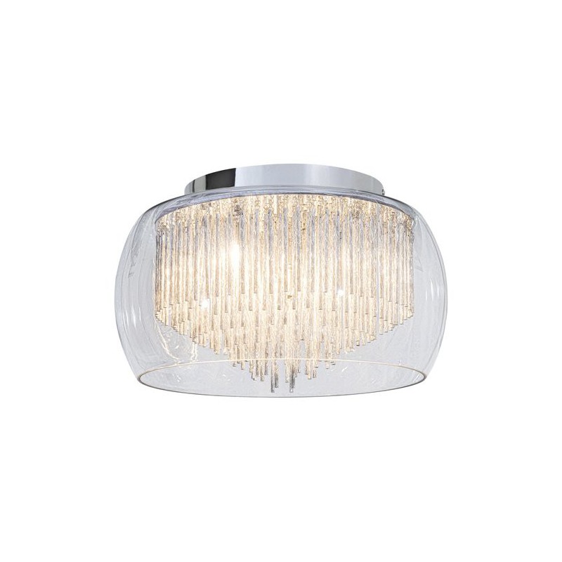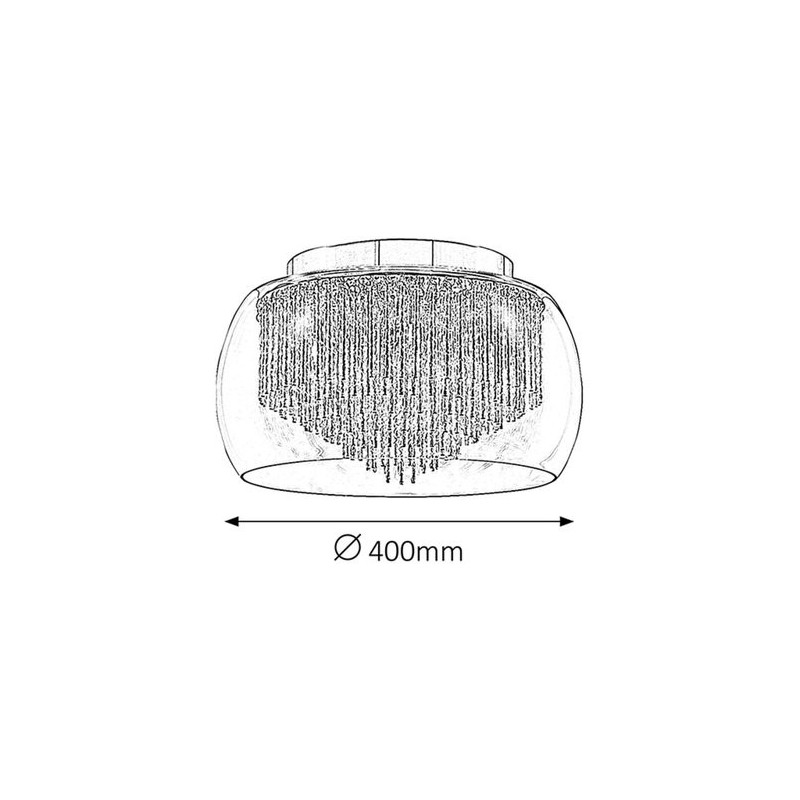 Moderné stropné svietidlo mona. Odporúčaná miestnosť pre použitie je obývačka. Farba lampy chrómová. Farba tienidla priehľadná. Materiál lampy kovové. Materiál tienidla sklo