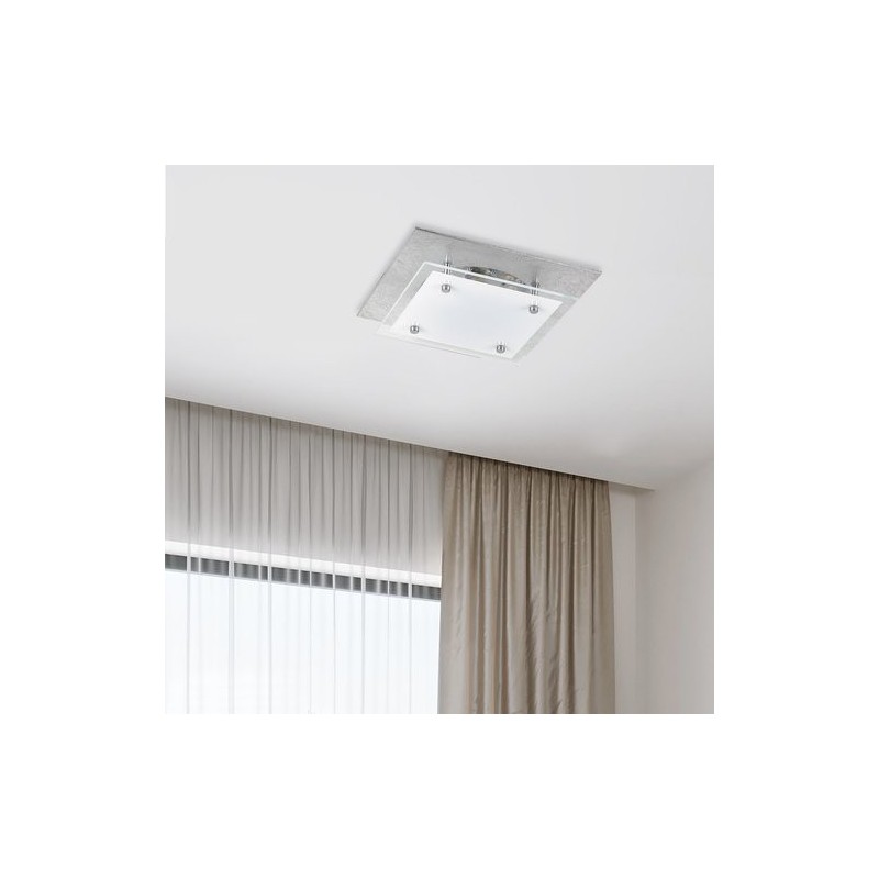 Moderné stropné svietidlo june. Odporúčaná miestnosť pre použitie je obývačka, pracovná izba. Farba lampy strieborná fólia. Farba tienidla biela. Materiál lampy kovové. Materiál tienidla sklo