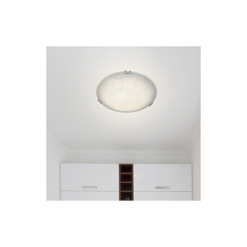 Moderné stropné svietidlo andra. Odporúčaná miestnosť pre použitie je obývačka, jedáleň, kuchyňa. Farba lampy biela vzorovaná. Farba tienidla biela. Materiál lampy kovové. Materiál tienidla sklo
