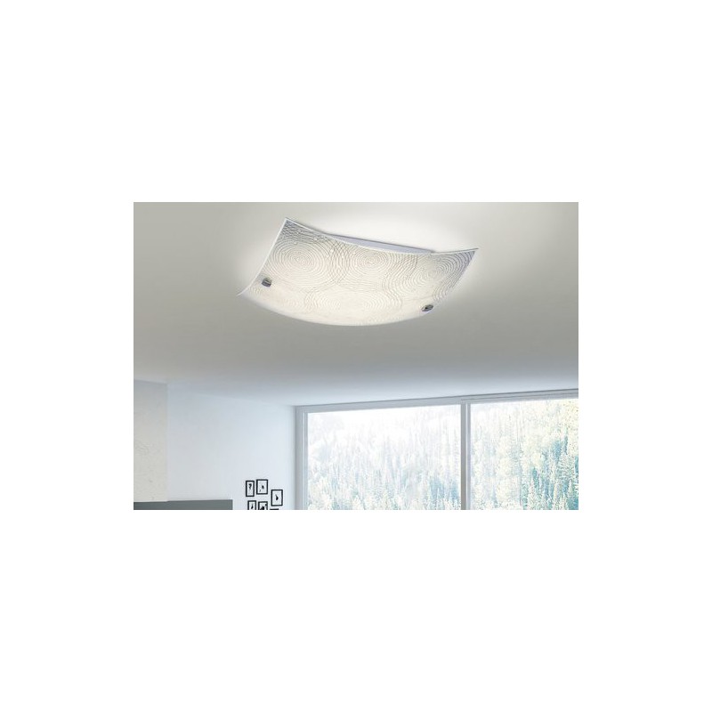 Moderné stropné svietidlo andra. Odporúčaná miestnosť pre použitie je obývačka, jedáleň, kuchyňa. Farba lampy biela vzorovaná. Farba tienidla biela. Materiál lampy kovové. Materiál tienidla sklo