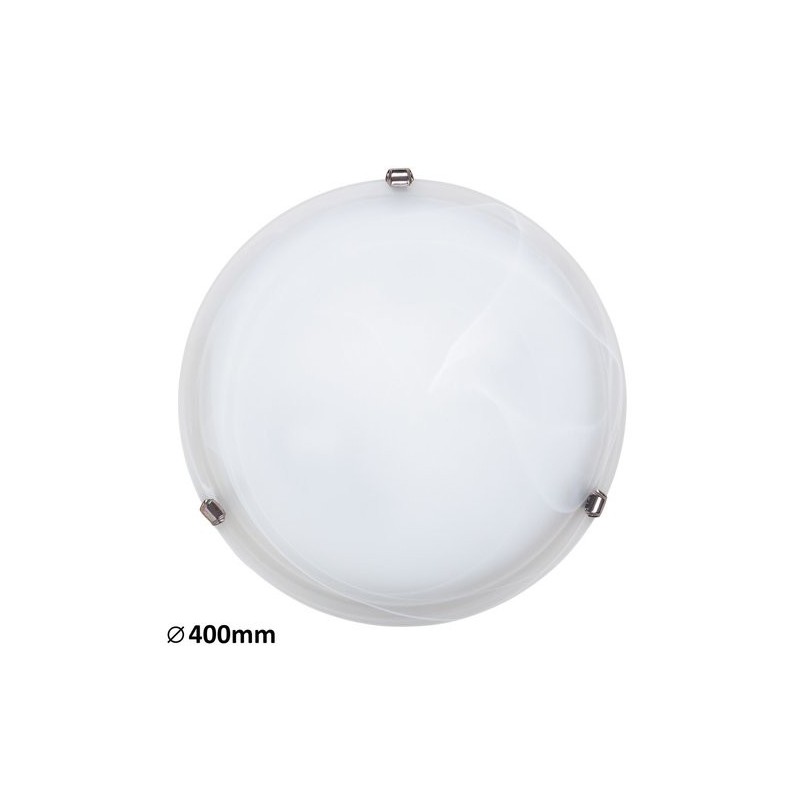 Štandard stropné svietidlo alabastro. Odporúčaná miestnosť pre použitie je obývačka, spálňa, pracovná izba. Farba lampy biele alabastrové sklo. Farba tienidla biele alabastrové sklo. Materiál lampy kovové. Materiál tienidla sklo