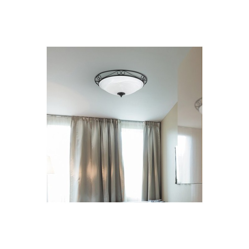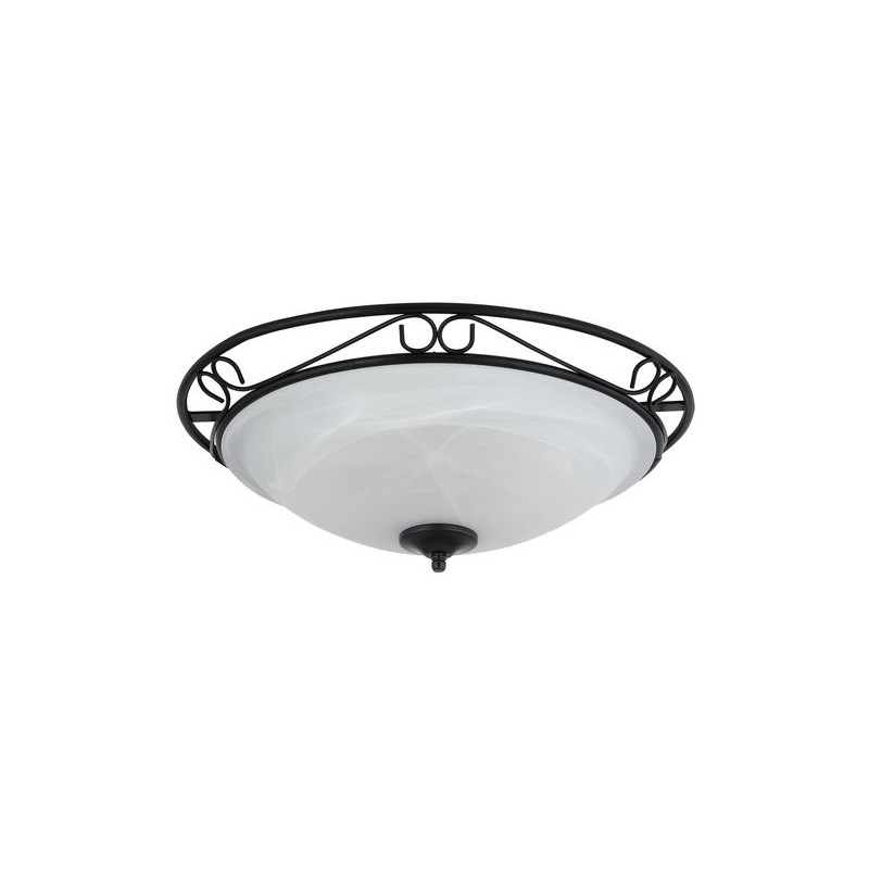 Mediteránsky stropné svietidlo athen. Odporúčaná miestnosť pre použitie je obývačka, pracovná izba. Farba lampy čierna. Farba tienidla biele alabastrové sklo. Materiál lampy kovové. Materiál tienidla sklo