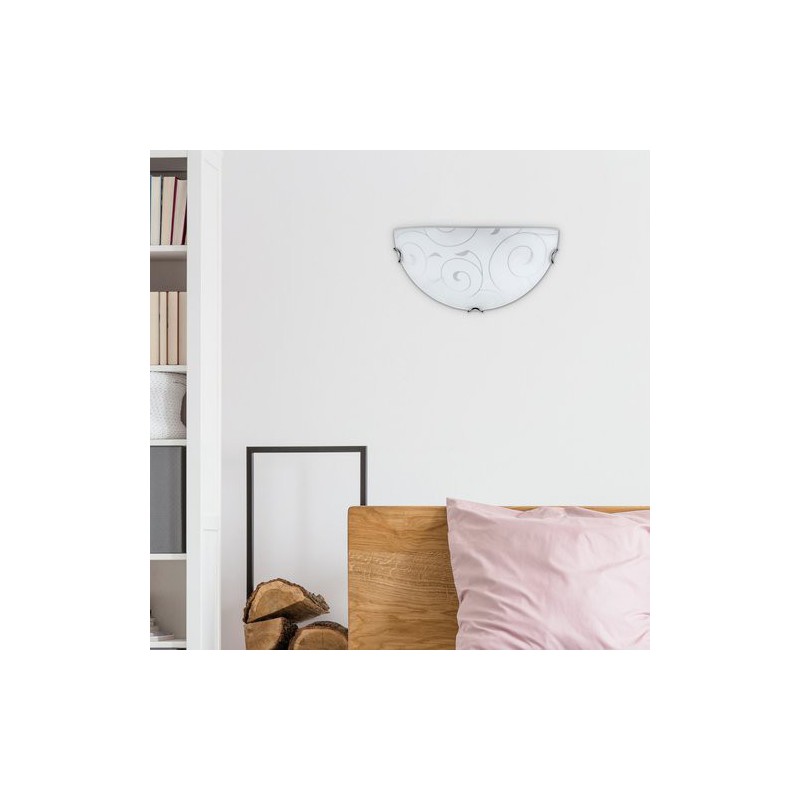 Štandard nástenné svietidlo harmony lux. Odporúčaná miestnosť pre použitie je obývačka, pracovná izba. Farba lampy chrómové úchytky. Farba tienidla biela vzorovaná. Materiál lampy kovové. Materiál tienidla sklo