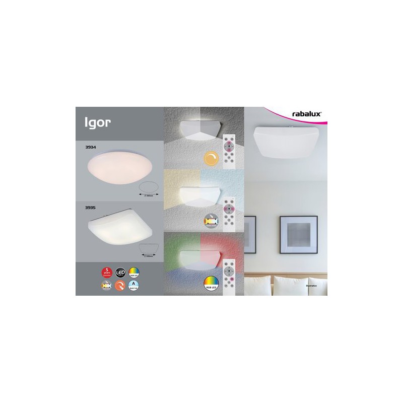 Rabalux 3934 - Igor stropné svietidlo LED 16W meniteľné umelá hmota biela/biela