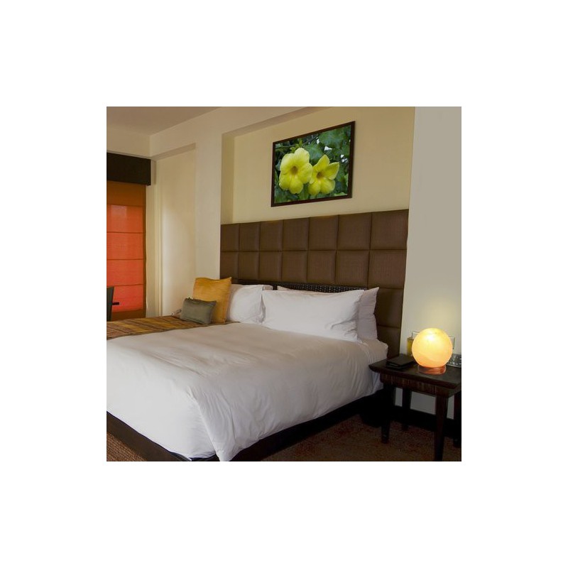 Mediteránsky dekoračné svietidlo ozone. Odporúčaná miestnosť pre použitie je obývačka, pracovná izba. Farba lampy hnedá. Farba tienidla červená-oranžová. Materiál lampy kamenná soľ/ drevo