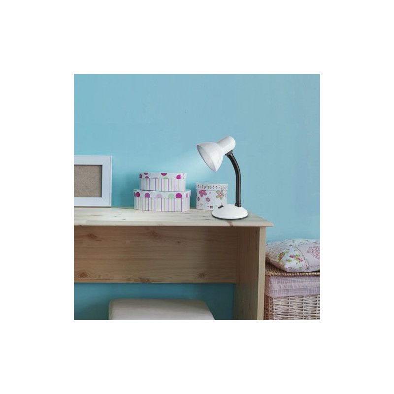 Štandard stolové svietidlo dylan. Odporúčaná miestnosť pre použitie je pracovná izba, detská izba. Farba lampy biela. Farba tienidla biela. Materiál lampy kovové. Materiál tienidla kovové