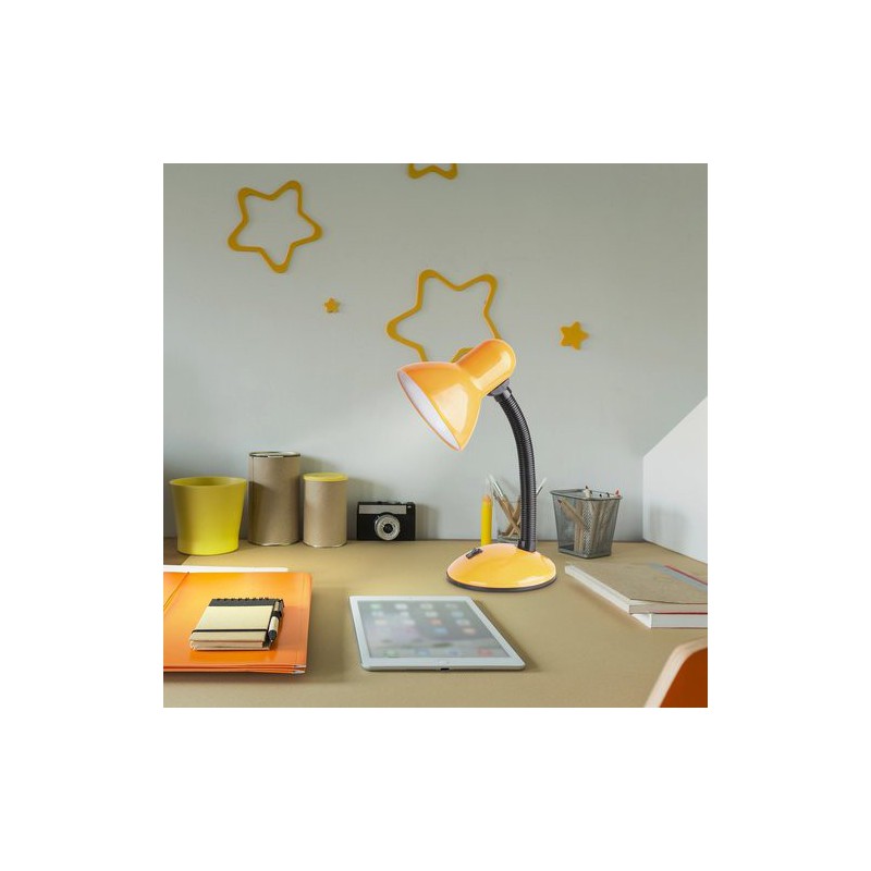 Štandard stolové svietidlo dylan. Odporúčaná miestnosť pre použitie je pracovná izba, detská izba. Farba lampy oranžová. Farba tienidla oranžová. Materiál lampy kovové. Materiál tienidla kovové