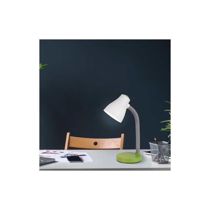 Moderné stolové svietidlo vincent. Odporúčaná miestnosť pre použitie je pracovná izba, detská izba. Farba lampy zelená. Farba tienidla biela. Materiál lampy umelá hmota. Materiál tienidla umelá hmota