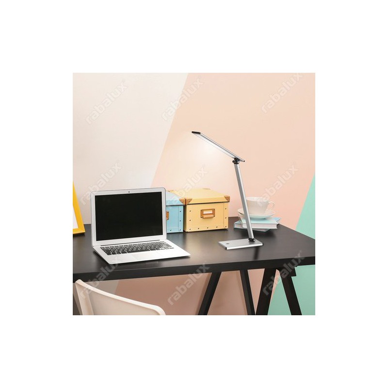Moderné stolové svietidlo brooke. Odporúčaná miestnosť pre použitie je pracovná izba, detská izba. Farba lampy strieborná. Farba tienidla strieborná. Materiál lampy kovové. Materiál tienidla umelá hmota