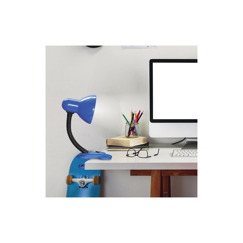 Štandard stolové svietidlo dennis. Odporúčaná miestnosť pre použitie je pracovná izba, detská izba. Farba lampy modrá. Farba tienidla modrá. Materiál lampy kovové/ umelá hmota. Materiál tienidla kovové