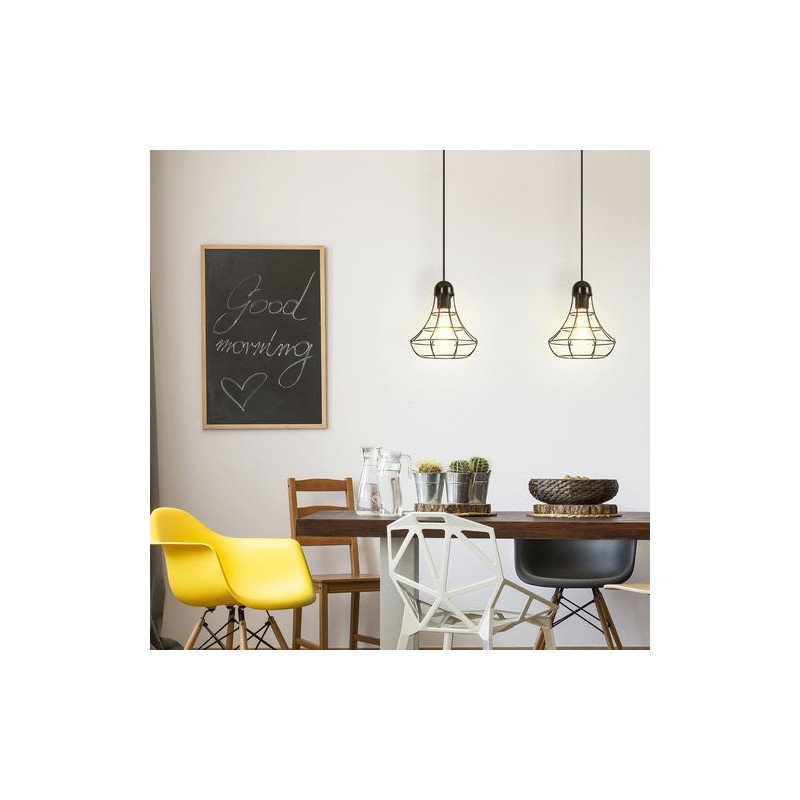 Industriálny závesné svietidlo ramsey. Odporúčaná miestnosť pre použitie je obývačka, pracovná izba. Farba lampy čierna. Farba tienidla čierna. Materiál lampy umelá hmota. Materiál tienidla kovové