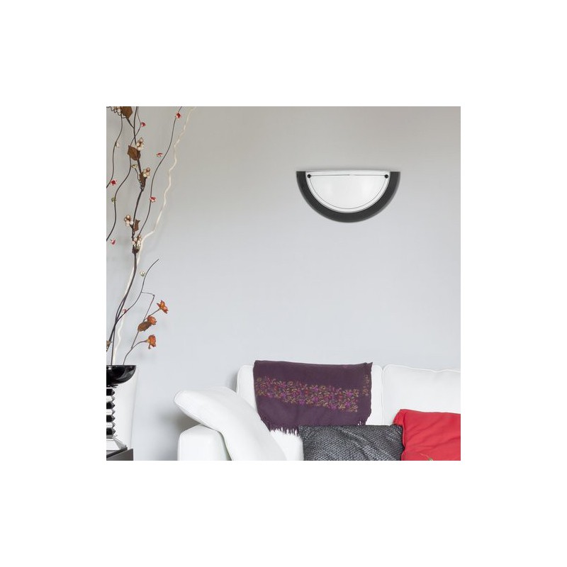 Štandard nástenné svietidlo ufo. Odporúčaná miestnosť pre použitie je obývačka, spálňa, pracovná izba. Farba lampy čierna. Farba tienidla opálové sklo. Materiál lampy kovové. Materiál tienidla sklo