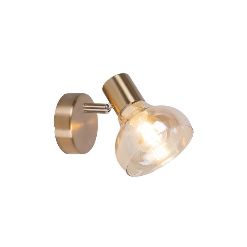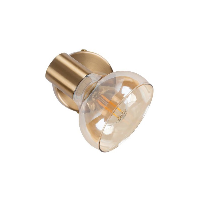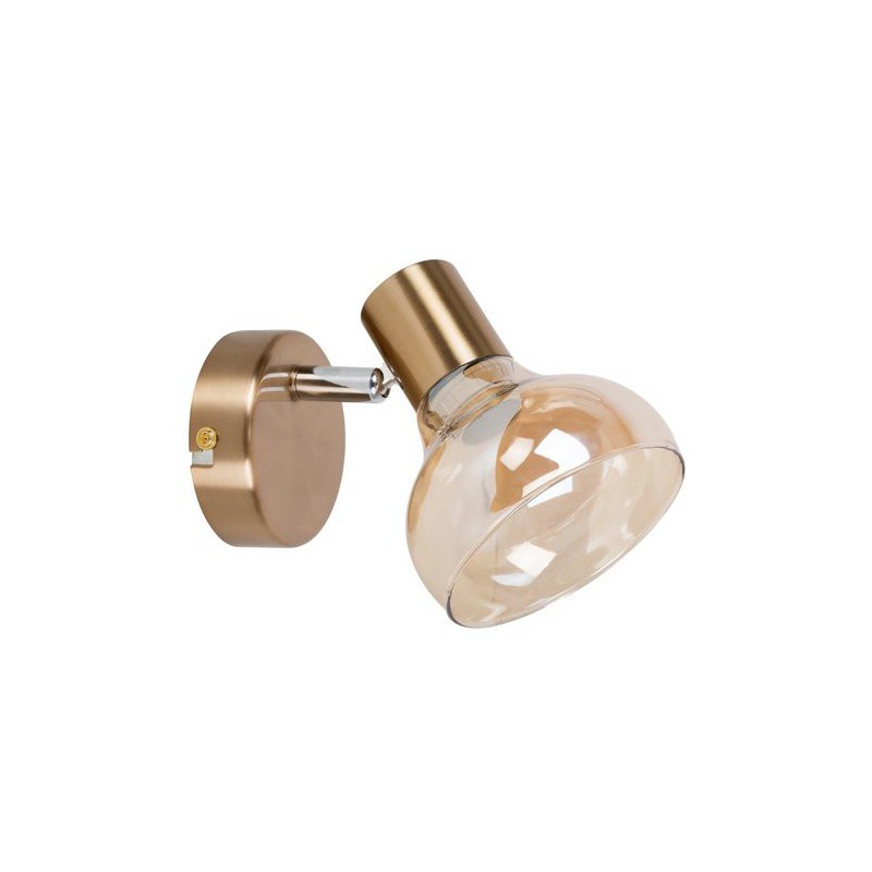 Moderné bodové svietidlo holly. Odporúčaná miestnosť pre použitie je obývačka, pracovná izba. Farba lampy antická zlatá. Farba tienidla jantár. Materiál lampy kovové. Materiál tienidla sklo