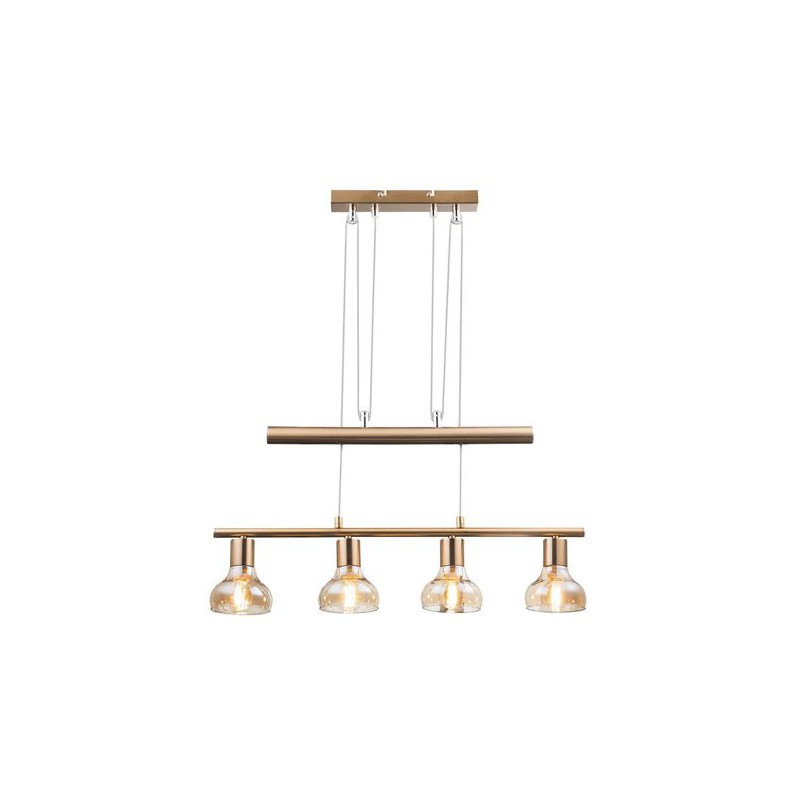 Moderné závesné svietidlo holly. Odporúčaná miestnosť pre použitie je obývačka, pracovná izba. Farba lampy antická zlatá. Farba tienidla jantár. Materiál lampy kovové. Materiál tienidla sklo