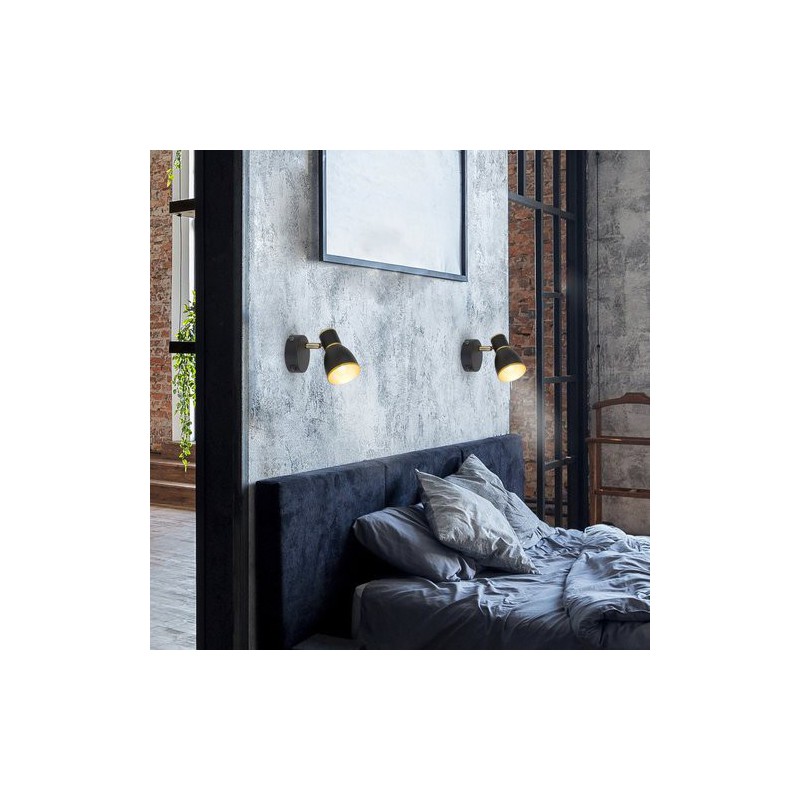 Industriálny bodové svietidlo mackenzie. Odporúčaná miestnosť pre použitie je obývačka, pracovná izba. Farba lampy čierna. Farba tienidla zlatá. Materiál lampy kovové. Materiál tienidla kovové