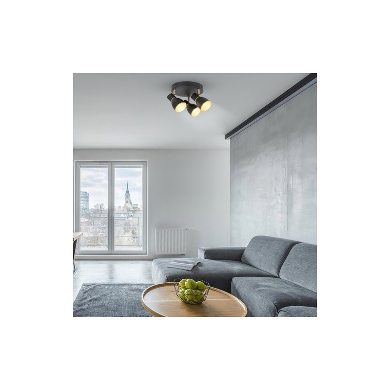 Industriálny bodové svietidlo mackenzie. Odporúčaná miestnosť pre použitie je obývačka, pracovná izba. Farba lampy čierna. Farba tienidla zlatá. Materiál lampy kovové. Materiál tienidla kovové