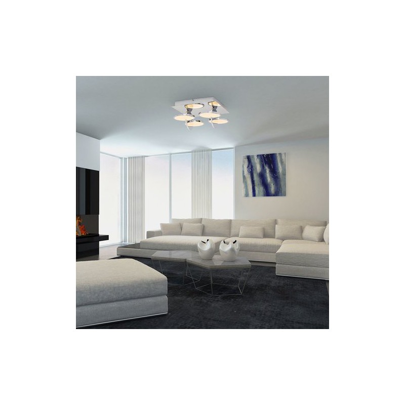 Moderné stropné svietidlo assana. Odporúčaná miestnosť pre použitie je obývačka, pracovná izba. Farba lampy chrómová. Farba tienidla opálové sklo. Materiál lampy kovové. Materiál tienidla kovové
