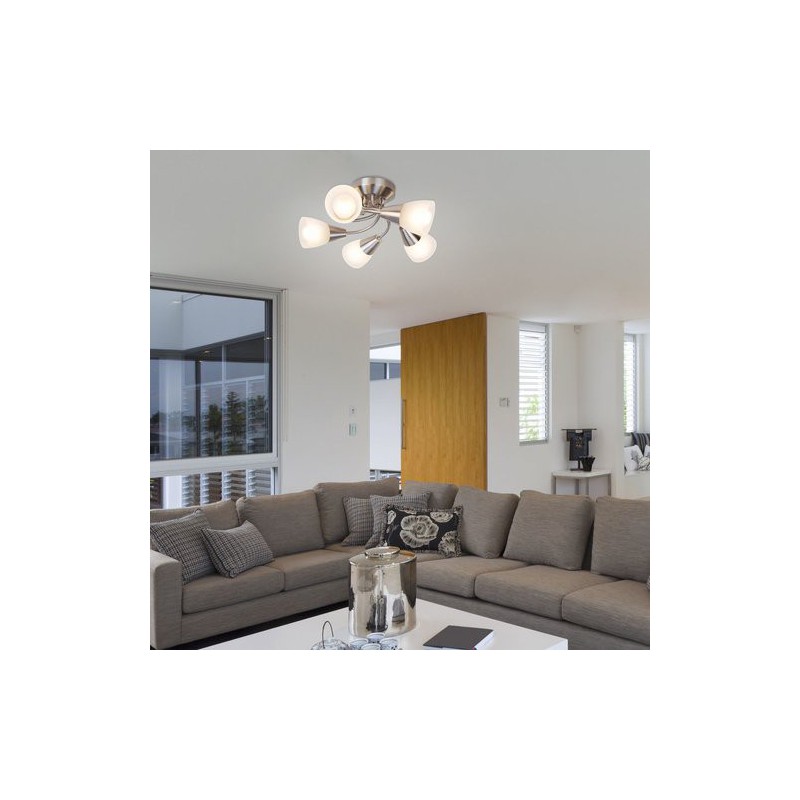 Štandard stropné svietidlo connor. Odporúčaná miestnosť pre použitie je obývačka, pracovná izba. Farba lampy saténová chrómová. Farba tienidla opálové sklo. Materiál lampy kovové. Materiál tienidla sklo