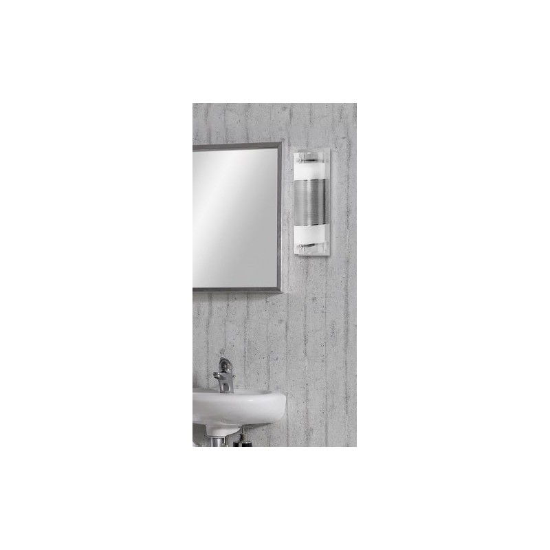 Moderné nástenné svietidlo periodic. Odporúčaná miestnosť pre použitie je kúpeľňa. Farba lampy chrómová. Farba tienidla priehľadná. Materiál lampy kovové. Materiál tienidla sklo/ kovové