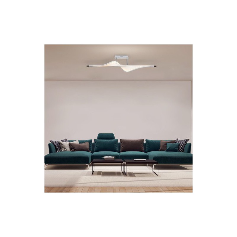 Moderné stropné svietidlo falcon. Odporúčaná miestnosť pre použitie je obývačka, pracovná izba. Farba lampy chrómová. Farba tienidla biela. Materiál lampy kovové. Materiál tienidla textil