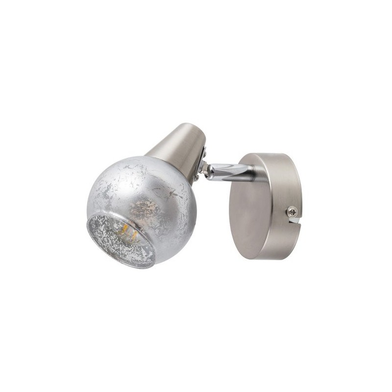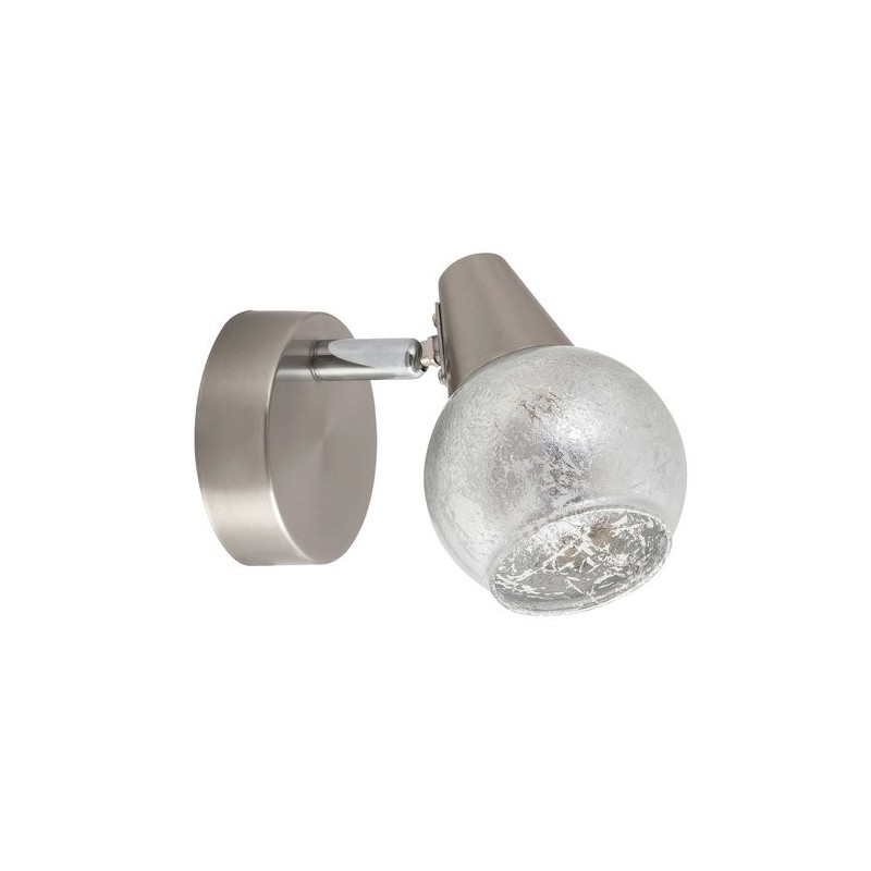 Moderné bodové svietidlo noelle. Odporúčaná miestnosť pre použitie je obývačka, pracovná izba. Farba lampy saténová chrómová. Farba tienidla strieborná. Materiál lampy kovové. Materiál tienidla sklo
