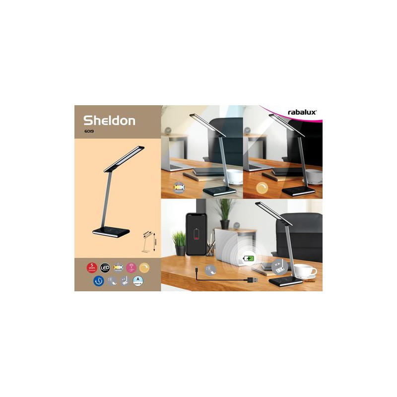 Minimalistický stolové svietidlo sheldon. Odporúčaná miestnosť pre použitie je pracovná izba. Farba lampy čierna. Materiál lampy umelá hmota. Materiál tienidla umelá hmota