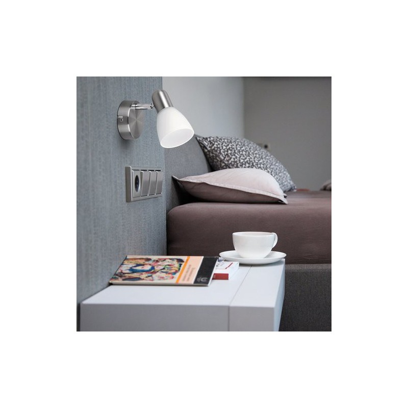 Štandard bodové svietidlo soma. Odporúčaná miestnosť pre použitie je obývačka, spálňa, pracovná izba. Farba lampy saténová chrómová. Farba tienidla biela. Materiál lampy kovové. Materiál tienidla sklo