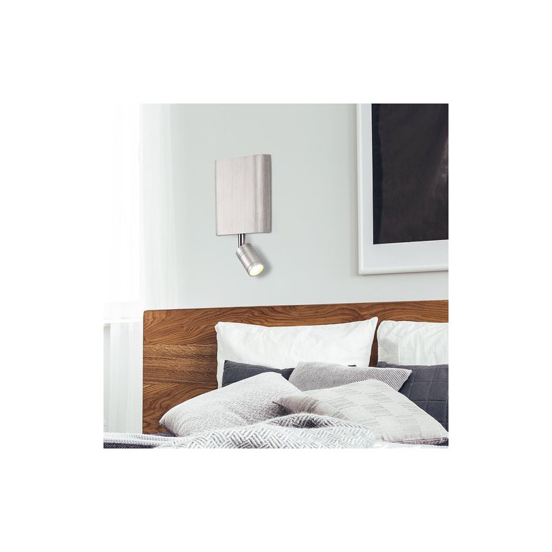 Minimalistický nástenné svietidlo benett. Odporúčaná miestnosť pre použitie je obývačka, spálňa, pracovná izba. Farba lampy kartáčovaný hliník. Farba tienidla kartáčovaný hliník. Materiál lampy kovové